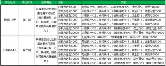 新服活动5:神兵提升--摧城、太极、何幸