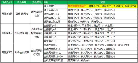 新服活动6:目标排行--通天塔、装备强化、血战天策