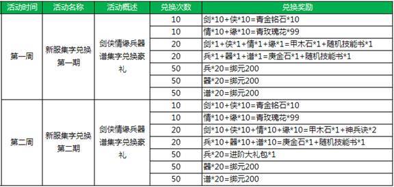 新服活动9:新服集字兑换