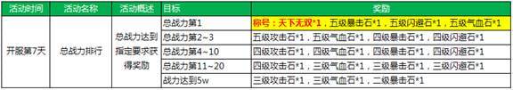 新服活动7:总战力排行