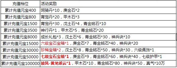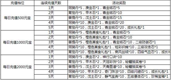 活动期间在线活充值可增加探宝次数,抽取活动奖励