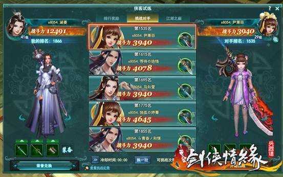 满足侠客试炼挑战等级的玩家即可参与挑战。刚刚进入所有的排名会先来的玩家占据,作为一名新人,首先需要站稳脚跟,那么就不得不在榜单上选择一名势均力敌的玩家进行挑战,战斗获胜后方能够获取排名。竞技场每天给予玩家免费挑战的次数有限,而且每次挑战会增加一个冷却时间,冷却时间达到30分钟玩家则无法进入,这时建议大家可以做其他任务等待冷却时间消耗完毕再来挑战。