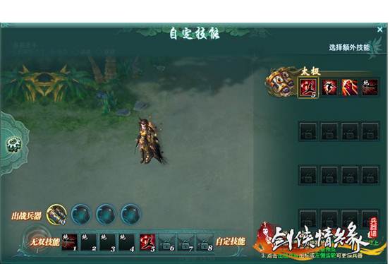 3.自定义技能:玩家到达一定等级,同时已经装备4把兵器后,可开启自定义技能。当玩家的百炼神兵到达一定等阶后,即可装备额外自定义技能,同时玩家还可预览每把兵器的技能。