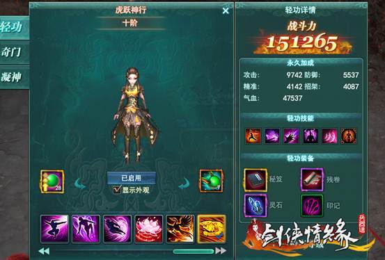 轻功:轻功开启后,提升轻功等阶,升级轻功技能,穿戴轻功装备均可提升轻功战斗力与角色战斗力。
