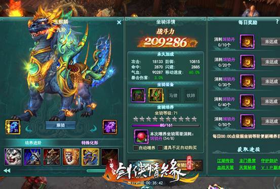 坐骑培养,坐骑进阶,为坐骑穿戴装备均可提升坐骑战斗力与角色战斗力。